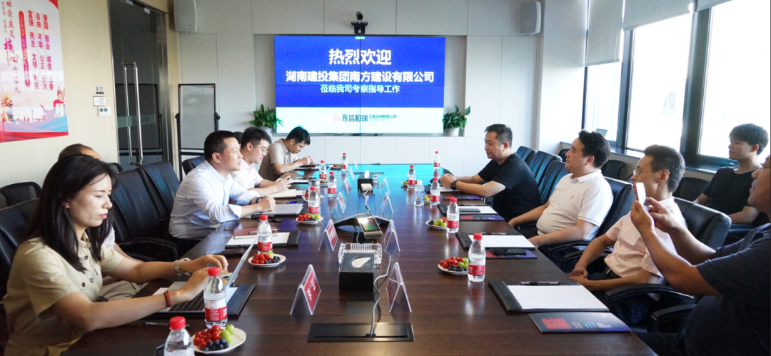 7月6日,湖南建投集團(tuán)南方建設(shè)有限公司黨委書記總經(jīng)理黃春林、常務(wù)副總黃揚(yáng)、投資部部長(zhǎng)王光彬、總經(jīng)理助理孫宏斌到訪永信和瑞總部。